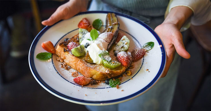 小さな鳥居が見える太田姫稲荷神社に隣接する麹町カフェの広々とした空間にはサプライズが溢れています。エントランス横・カウンターに面する壁をよく見ると、幾つものコーヒー豆の跡形が。ふと天井を見上げれば、鳥たちの姿。麹町カフェに集うアーティストたちによって描かれた花や植物の影は、自由を求めて枠から飛び出そうとする真っ最中。そんな視覚的なホスピタリティーはもちろん、麹町カフェのウェイター・ウェイトレスたちは、常連のお客様も初めてのお客様も、誰もが特別な気持ちになれるサービスを心掛けています。老夫婦へ出すお魚はあらかじめ骨を抜いてテーブルへ。窓際が好きなあの方は、あの席へ。妊婦さんのデザートプレートには、コウノトリの絵を添えて。お皿の上の味わいとは、気遣い、ディテールへのこだわり、そして優しさも加わるものであるからこそ、自分の家にやってきた友人や大切な人をおもてなしする気持ちで日々ホールを駆け回っています。