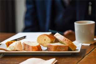 麹町カフェから2009年に誕生したベーカリー・FACTORY(九段下)のオーブンより毎朝届くフレッシュな自家製酵母パンを使ったサンドイッチは、開店当時からの人気メニュー。旬の食材をふんだんに使ったパスタ、お肉料理にお魚料理、緑鮮やかなご馳走サラダにあつあつスープ。ディナータイムには、自家製シャルキュトリーやワインとのペアリングが楽しい煮込み料理まで。エグゼクティブシェフ・松浦亜季は「麹町カフェの料理のすべての原点は両親が作ってくれた食事」だといいます。南フランスやイタリアなどの地中海地方、北・南アメリカ、中東、時にはアジアなどからインスピレーションを受ける料理も “日常の中のとびきり”という麹町カフェらしいプレゼンテーションで、あっ!という驚きを届けつつも、決して気取りすぎることなく、五感それぞれの温かみを大切に仕上げます。